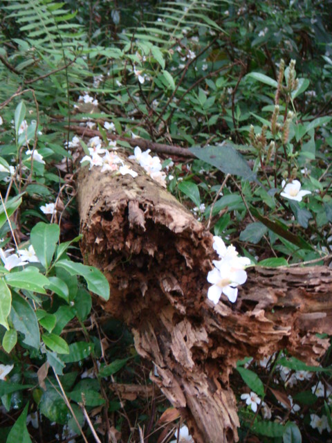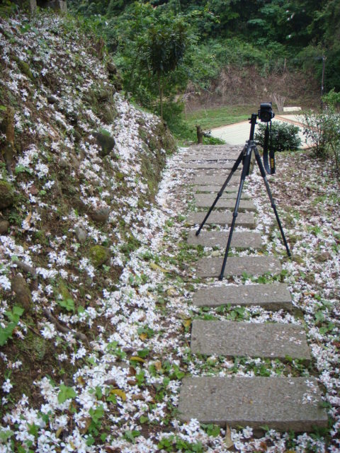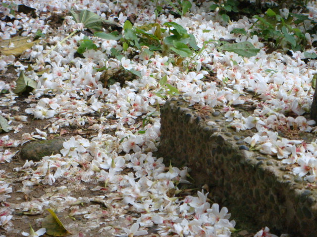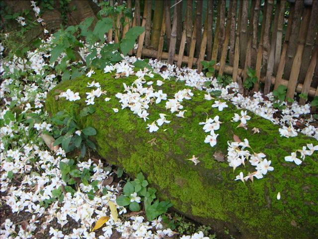 在歇心茶樓用完午餐後直接就往山上走去,在歇心亭旁的小山坡上,看到掉落滿地的桐花,
